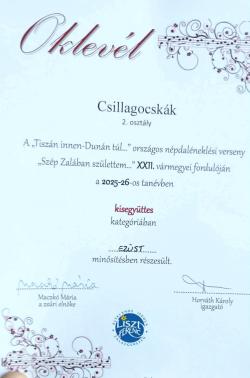 -Ezüst minősítés: Csillagocskák 2.a: Antalics Lia, Zsohár Lia