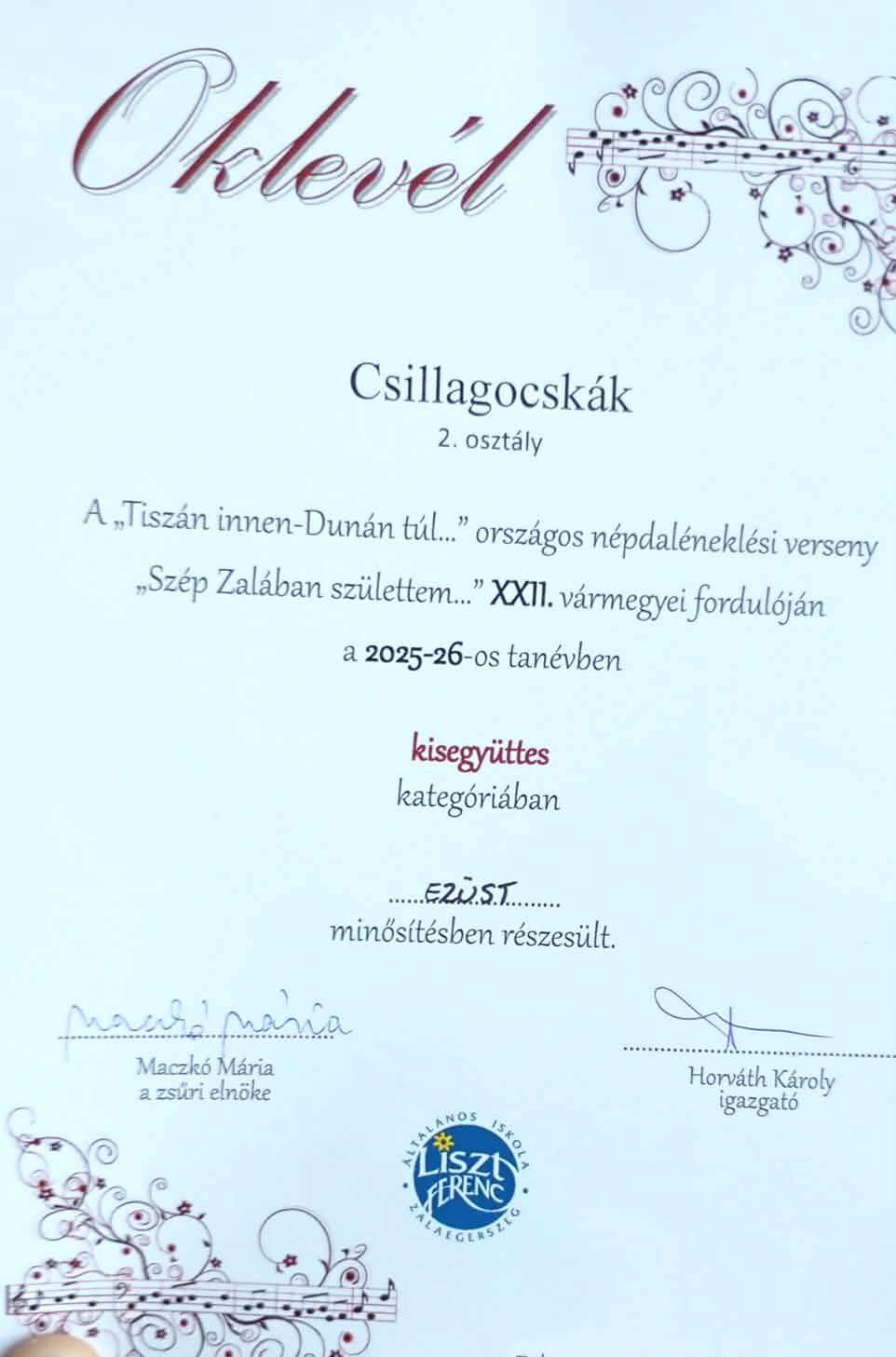 - Arany minősítés: Csicseriborsók 2.b: Buchelt Csenge, Flórián Jázmin, Varga Botond, Zoltán Dorina