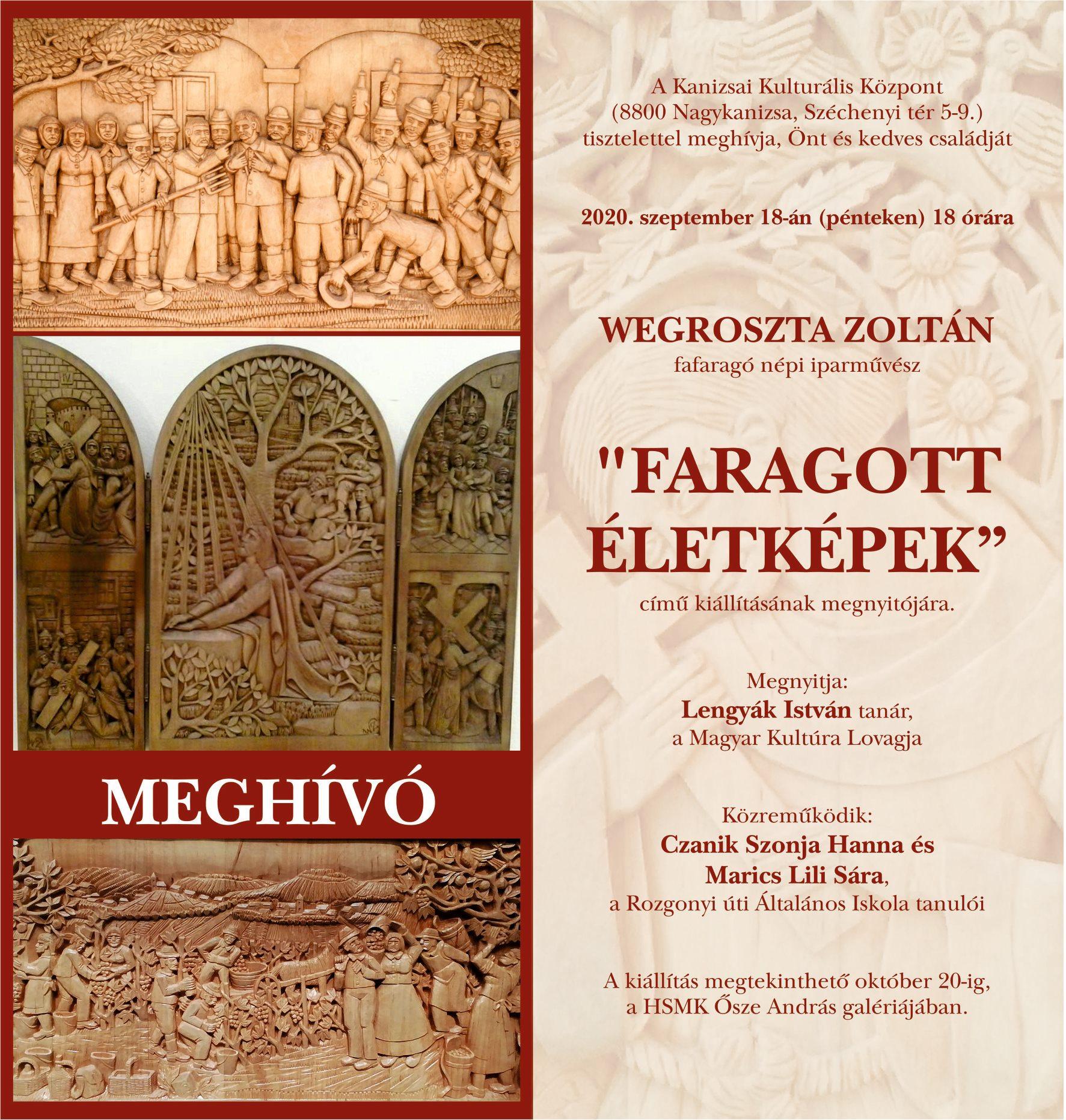 Faragott életképek - Wegroszta Zoltán fafaragó népi iparművész kiállításán szerepelt iskolánk két tanulója Czanik Szonja Hanna és Marics Lili Sára. A kiállítás megtekinthető október 20-ig, a HSMK Ősze András galériájában.