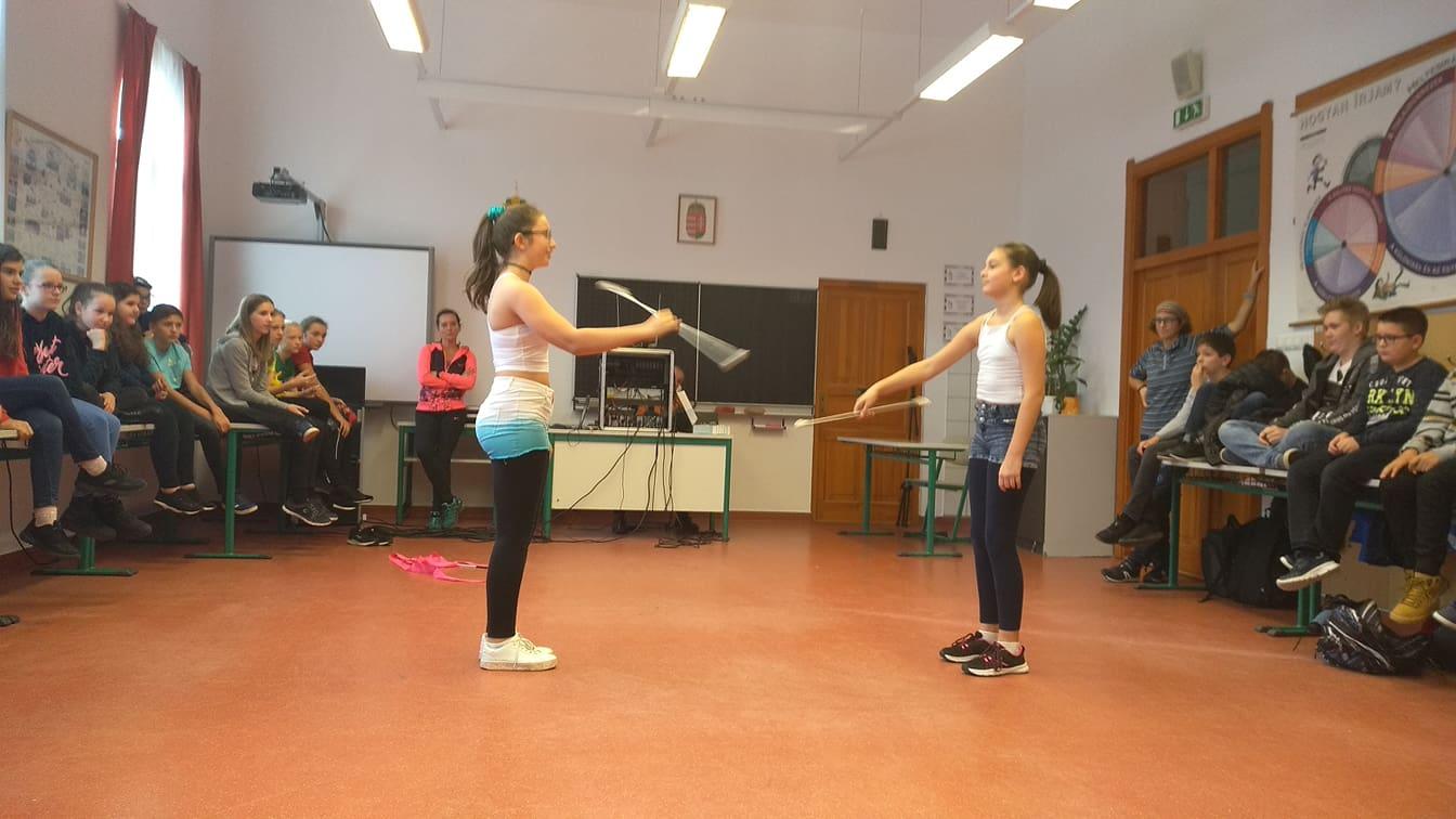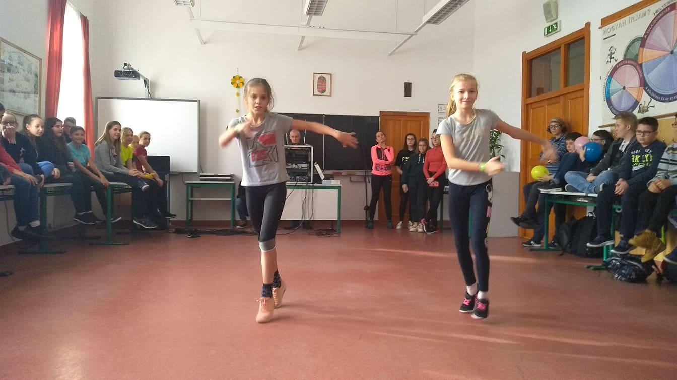 2-3. helyezés megosztva: Kocsis Lili és Csermák Anna (6.b), valamint Beke Nikolett és Kőszegi Gréta (5.b) táncprodukciói