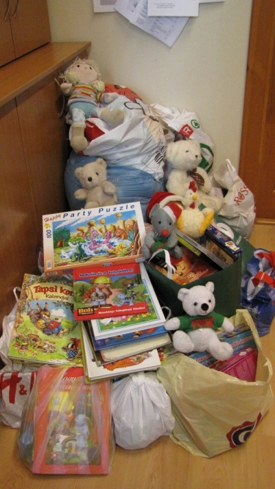| A Nagykanizsai Családsegítő Központ szervezésében jótékonysági játékgyűjtésre került sor. Az összegyűlt játékokat a szervezők nélkülöző gyerekeknek fogják ajándékozni egy karácsonyi ünnepség keretében. Tanítványaink közül sokakat megérintett a felhívás mottója (Segíts, hogy segíthessünk! Lehet, hogy a Te régi játékod lesz egy kisgyermek legkedvesebb ajándéka!), reméljük, legközelebb még a mostaninál is többen fogják átérezni, hogy adni jó! |