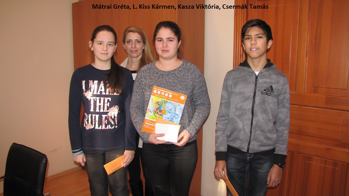 Mátrai Gréta (7.b), Kasza Viktória (7.a), Csermák Tamás (7.a), Varjas Dorina (már BLG, 9.d)