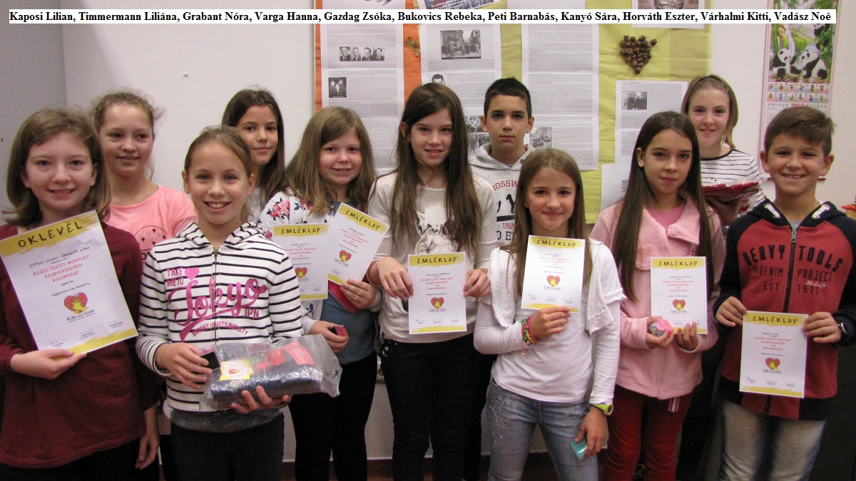 Az Országos Mentőszolgálat és a Magyar Vöröskereszt közös rajzpályázatot hirdetett "Kezed életet menthet!" címmel. Közös művével különdíjat kapott Kaposi Lilian és Grabant Nóra. Ajándékot és emléklapot vehetett át Várhalmi Kitti, Gazdag Zsóka, Peti Barnabás, Timmermann Liliána, Horváth Eszter, Varga Hanna, Bukovics Rebeka, Vadász Noé, Kanyó Sára és Bódogh Endre. Mindannyian az 5.a osztályba járnak, s munkájukat L. Kiss Kármen tanárnő segítette.
