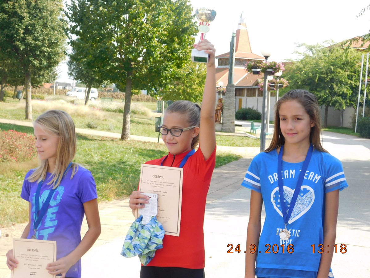 1. Kálovics Adél (7.a) 2. Varga Laura (7.a) 3. Vörös Vanda (7.a) Csapatban 1. helyezés. |