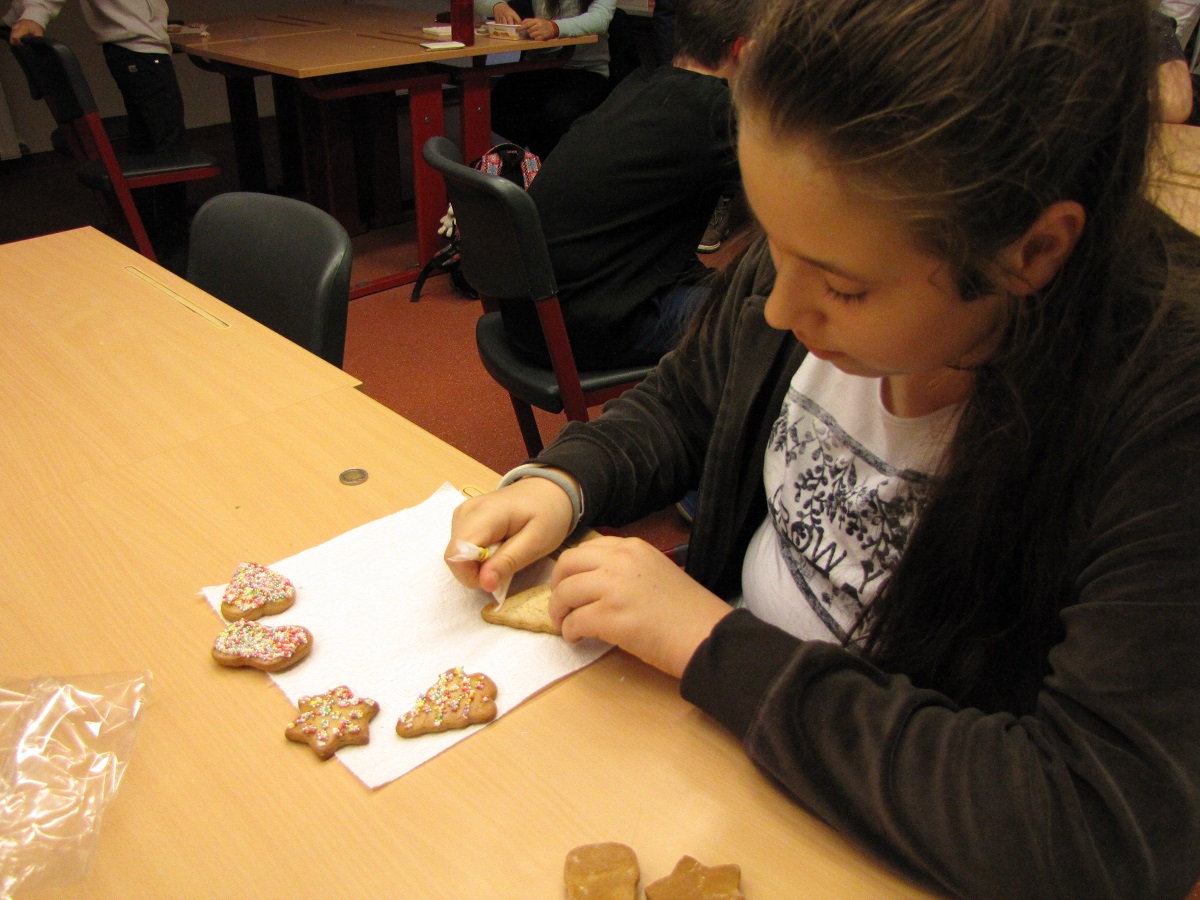Az elmúlt tanévhez hasonlóan ismét Drótos Gyöngyi mézesbábos részvételével színesítettük az adventi programok sorát. A kiállítás megnyitása mellett két alkalommal nyílt lehetősége egy-egy csoport gyereknek, hogy elkészítse saját díszítésű mézeskalácsait.