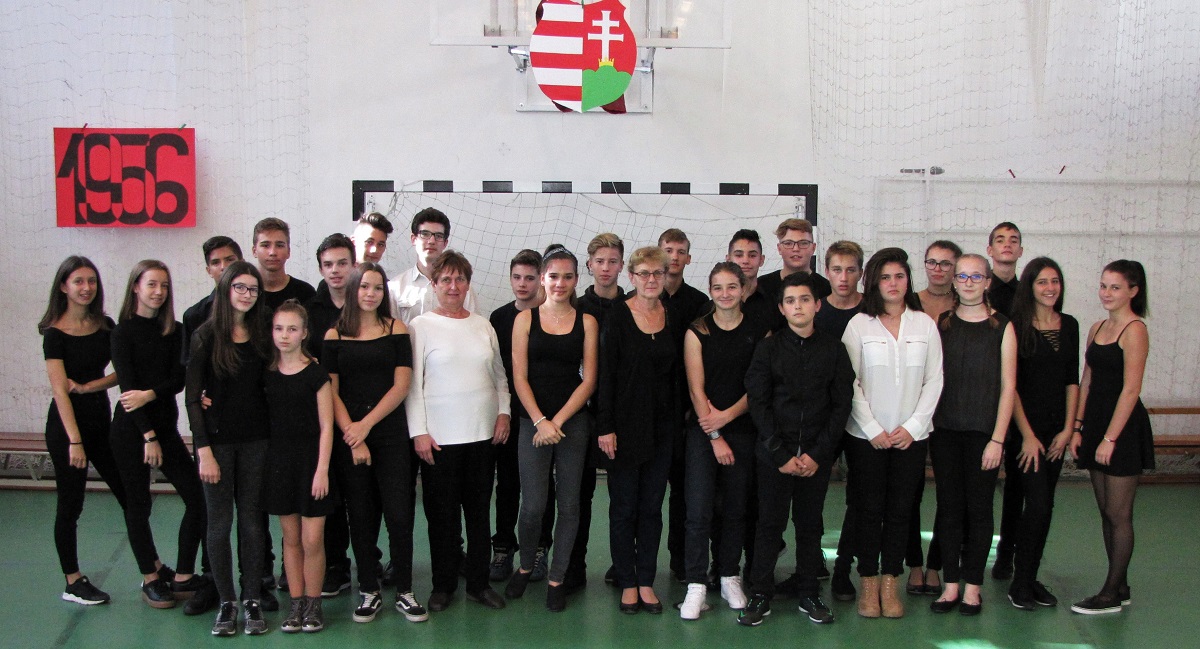 2017. október 20., Ünnepi megemlékezés az 1956-os forradalom és szabadságharcrólA Jakab Lászlóné és Nagyné Horváth Edit tanárnők által betanított műsort a 8.a osztályosok adták elő.