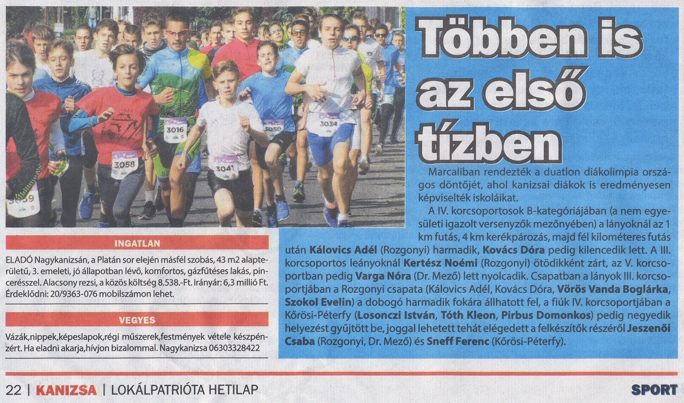 1. Rozgonyi A: Baj Lili, Bölecz Bence, Miklós Maja, Mátyás Máté, Nyakas Emese, Mátyás Ninetta, Bódis Levente, Varga Réka (mind 6.b), Mátyás Petra (7.b)