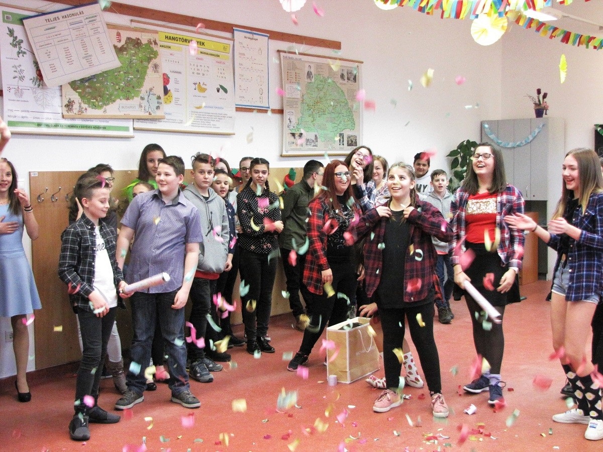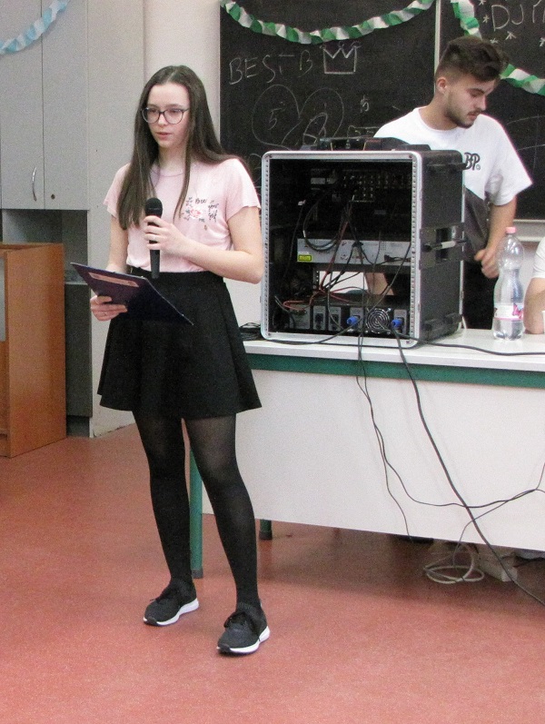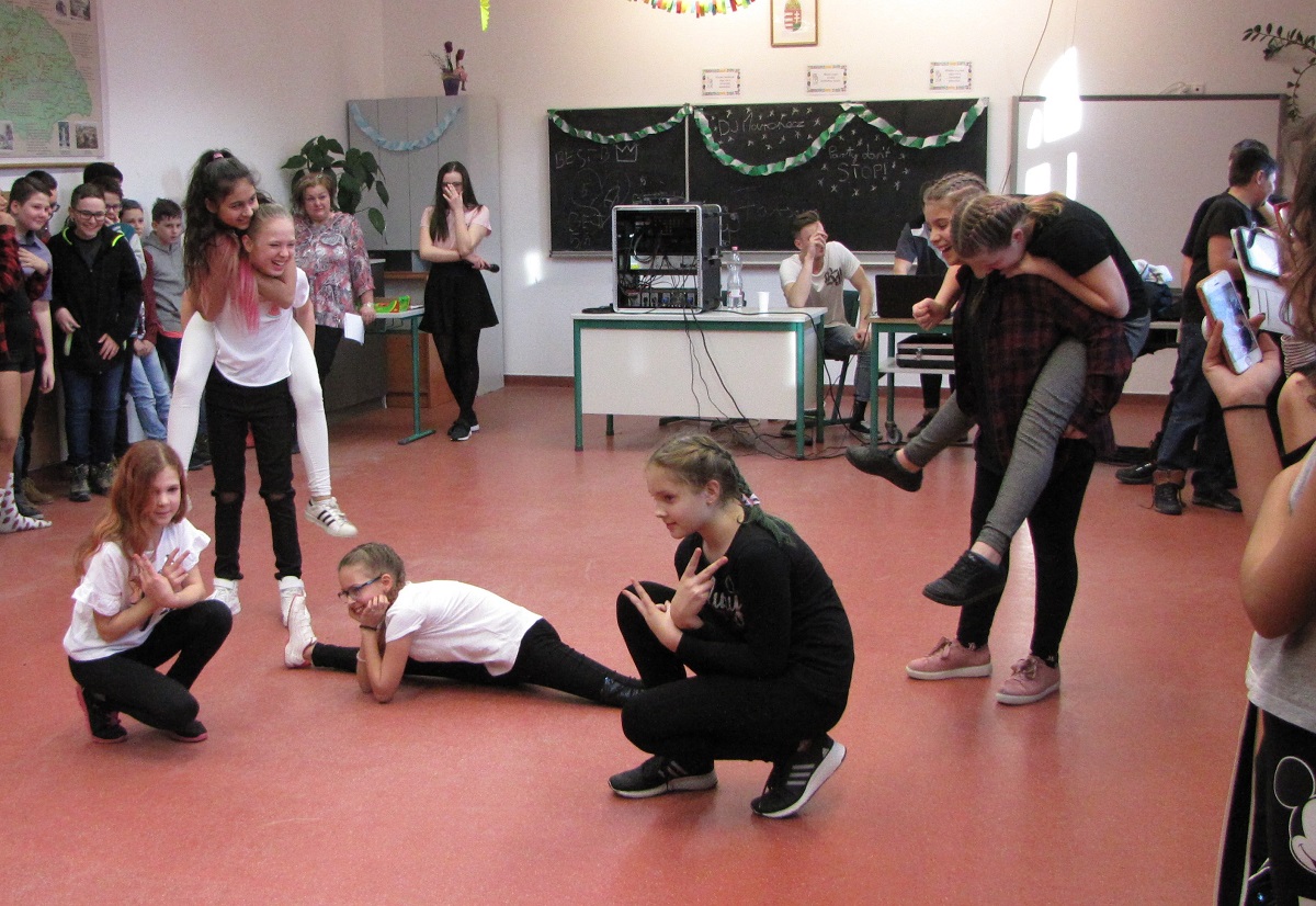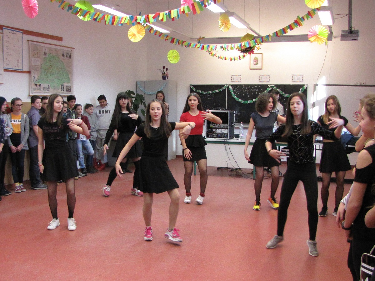 A felsős farsangot Mátyás Petra (8.b) diákelnök nyitotta meg, majd az Eraklin Táncklub táncosai mutatták be a nyitótánco(ka)t. Az 5., 6. és 8. osztályok táncos produkciói után kezdetét vette a karneváli mulatság.