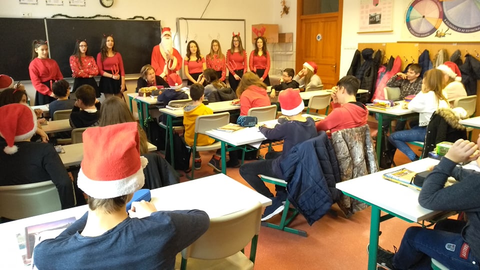 A Mikulást köszöntő műsort Tomasics Lászlóné tanítónő tanította be a 4.a osztályosoknak. Volt is minek örülni, mert a nagy szakállú vendég az osztályokat végiglátogatva szaloncukorral kedveskedett a gyerekeknek. Felsős csapatunk délután részt vett az Önkormányzat által szervezett Mikulász-kupa elnevezésű vetélkedőn.