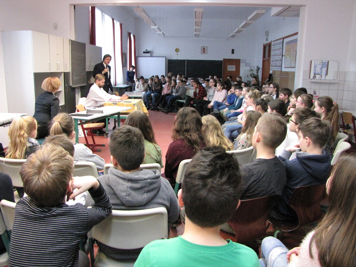 A Szabad Ötletek Színházának társulata adott elő két darabot iskolánkban a Magyar Kultúra Napja alkalmából. Az 5-6. osztályosok egy Karinthy Frigyes, míg a 7-8. osztályosok egy Örkény István műveiből készült összeállítást nézhettek meg.