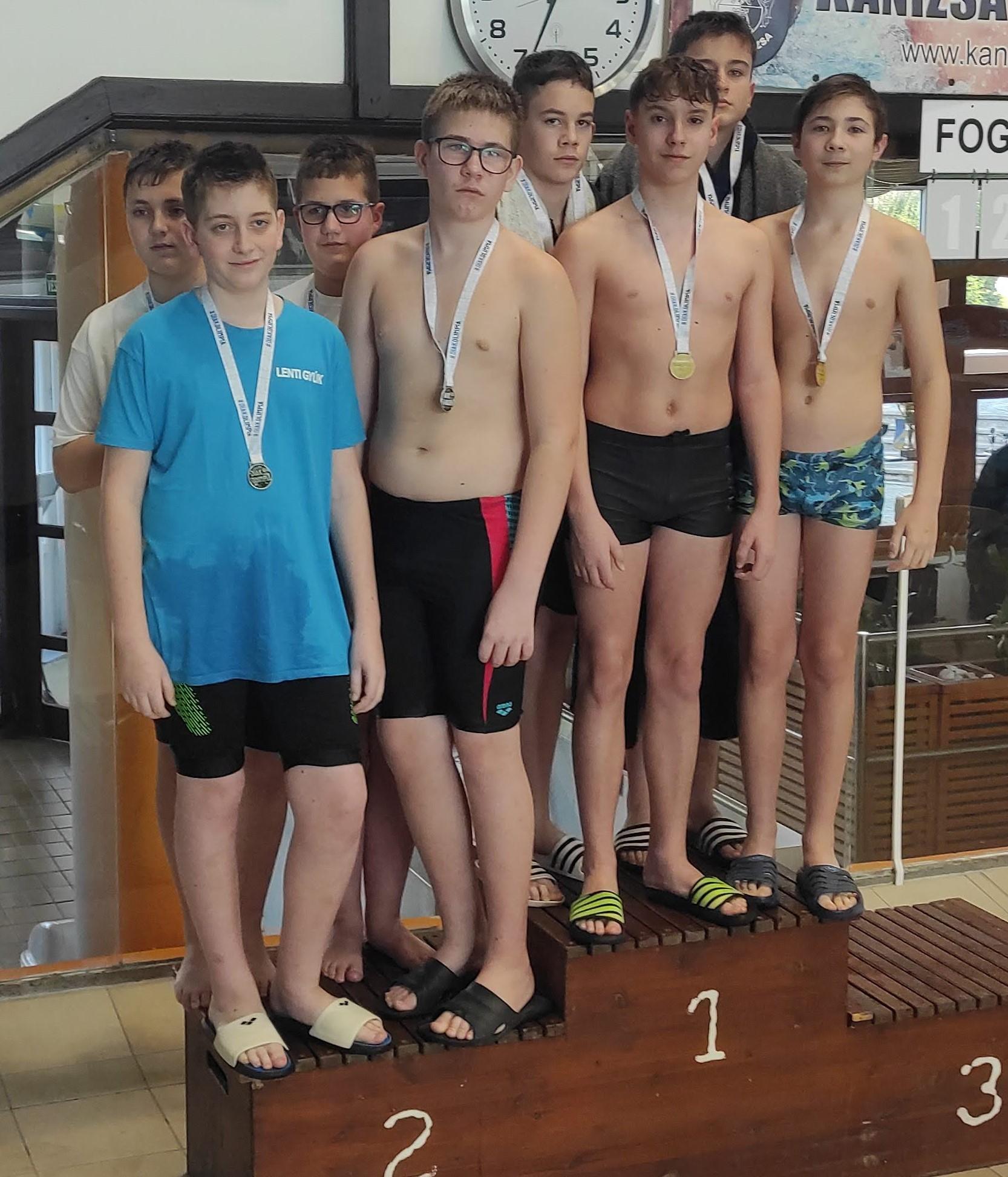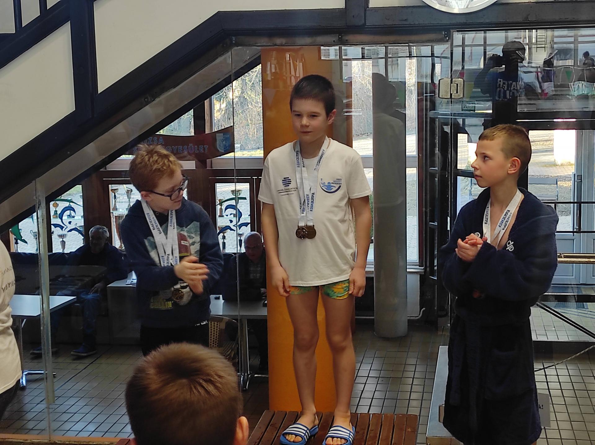 Simonka Levente (2.B osztály) 50 m mellúszásban 1., 50 m hátúszásban 3. helyen ért célba.