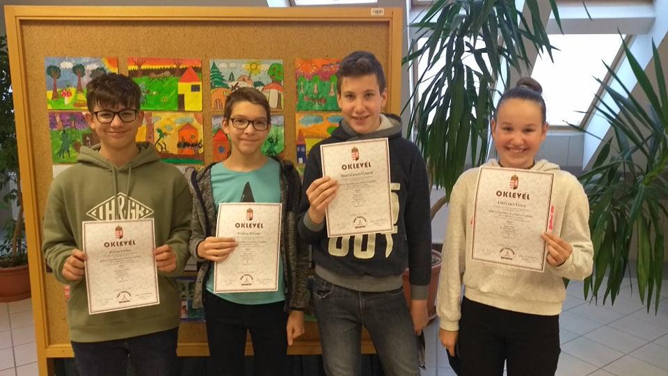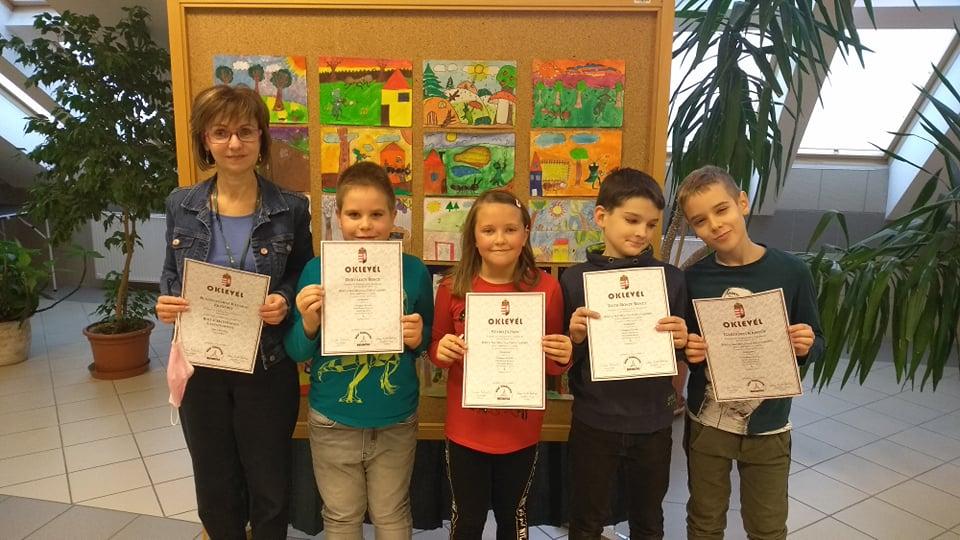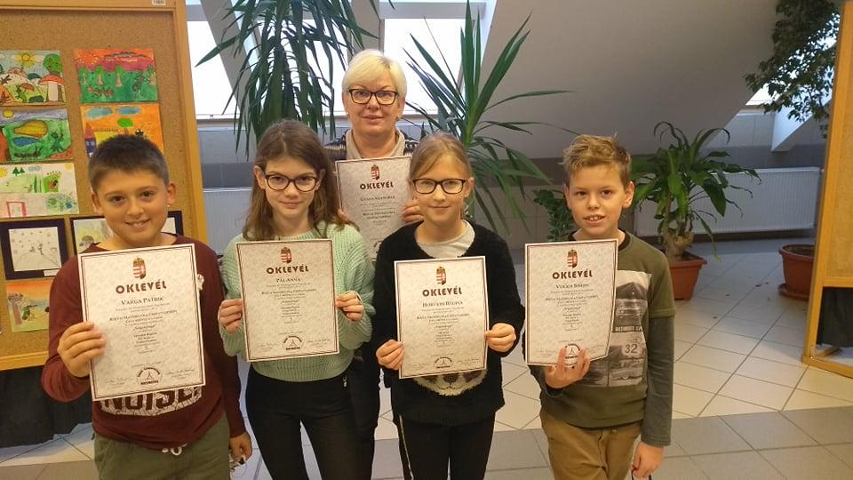 4. osztályosok ennél is ügyesebbek voltak, 4/a-s tanulók közül Horváth Regina, Pál Panna, Varga Patrik és Vukics Simon összetételű csapat a 2. helyet érte el ebben a fordulóban. Felkészítő tanár: Gyana Sándorné