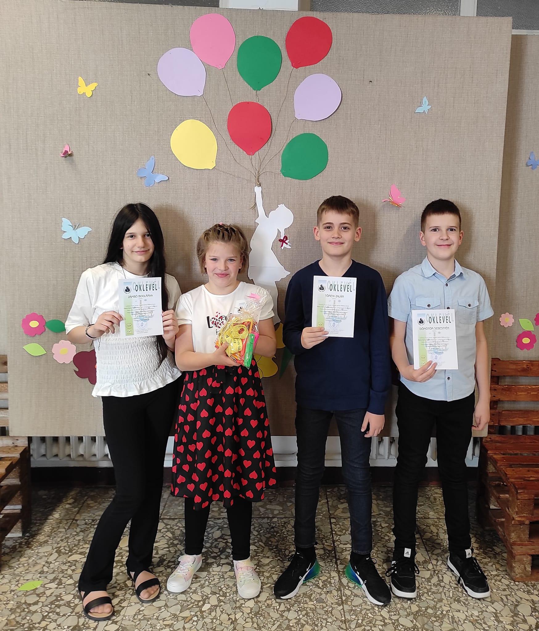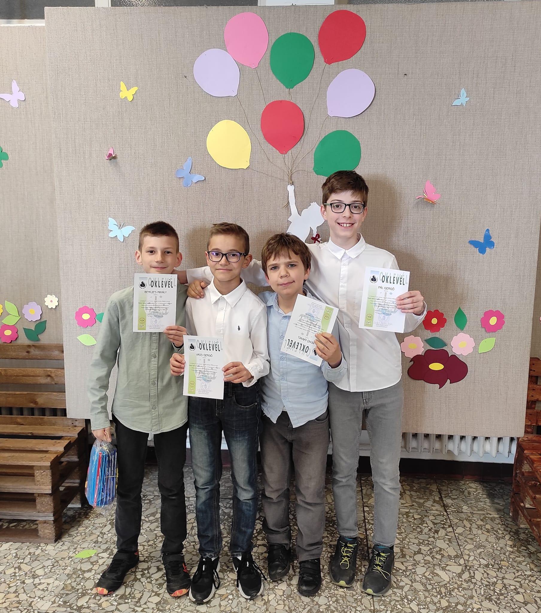 Kiválóan teljesítettek 4. osztályos diákjaink a Péterfy vármegyei tanulmányi versenyen.