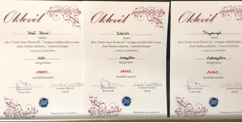 A "Szép Zalában születtem..." területi népdalversenyen nagyon szép eredményeink születtek.